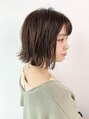 少し前下がりの切りっぱなしボブ、少し前下がりにすることによってシャープな印象になります!スタイリングも簡単なので、毎日のスタイリング時間が短くなります☆