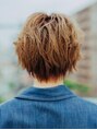 バングを作らずショートグラベースで切りました!カラーをハイトーンにすることにより、動きのあるスタイルに!全体的にワンカールパーマをかけて後ろに流すだけて簡単スタイリングできちゃいます!