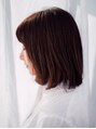 ふんわりと優しい感じのワンカールのミディアムボブ。すっきりとしたシルエットが印象的ですね。ツヤ感のある落ち着いたカラーリングが雰囲気に合っていますね。透け感のある長めの前髪で大人っぽさを演出。前髪で女の子らしく。