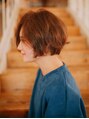 大人っぽい印象のボブショート。前髪を長めにする事で大人の色気がある雰囲気に◎縦、横、後ろからのシルエットがひし形に作ることで頭の形を綺麗に見せる黄金比に!