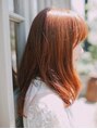 王道ナチュラルワンカールスタイル。毛先が内側に入るようパーマをかけ、カラーはツヤのあるオレンジベージュで上品な大人かわいい雰囲気で20から40代と幅広い年代に似合うヘアスタイル◎
