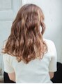 ウエービーなカールでガーリーさを出したロングスタイルです。カラーもチェリーピンクで可愛らしい女の子スタイルによせました。カール感より強めのウエーブにする事で、より今っぽい外国人風スタイルになります☆
