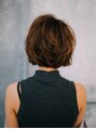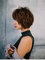 全体的に丸くなるようにシルエットを作っているのですが、襟足を少し長めに残し、エッジの効いたスタイルにしています。