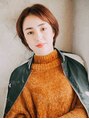 顎くらいのショートグラデーションスタイル。ボリュームの位置を高くしてトップにレイヤーが入ることでふんわりと。からは明るめで陽気的な雰囲気のカッパーブラウンに。耳にかけることで顔周りがスッキヘルシーな女性像に。