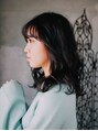 ミディアムレングスのカールスタイルです!全体に大きくカールをしたスタイルで伸ばしかけのときもカールがあることでスタイリングがしやすくヘアカラーのダークトーンのツヤ感で少しクール系の雰囲気になります!!