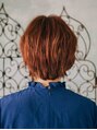 前髪なしの大人ショートスタイルです。カラーはハイライト、ローライトを入れて動きを出して全体はオレンジブラウンをオンカラーしてツヤ感を◎ストレートアイロンでハネさせたり、ウェーブで動きをつけると軽さが出るのでgoodです!!