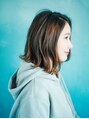 鎖骨あたりで少し前下がりになるようにカットしたナチュラルなミディアムスタイル。太めのコテでゆるーいウェーブになるように軽くアトをつけています。