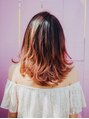 ヘアカラーは、暖色系のお色味でハイライトを全体的に入れてメリハリをつけたスタイル!!温かみのあるお色で優しい印象に☆全体をブリーチしていないのでダメージを削減。センターパートスタイルの長めバングがより色っぽく女っぽく見えます。