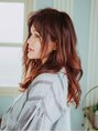 カジュアルなロングのスタイルです。元々あまり長くないシースルーバングをかきあげスタイルにすることで、大人っぽさやかっこいい印象のでるスタイリングになっています。