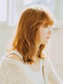 外国人風カラーのハイトーンで透明感のあるカラーリングに★赤みを打ち消し柔らかなベージュ系のお色にしています★ Aラインのミディアムスタイルで女の子らしいフェミニンなイメージにしあげました。