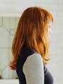 オレンジ系のブラウンカラーのシンプルなロングヘア!アシメの前髪がワンポイントになっているスタイルです。お洒落な印象や元気で明るい女性の印象を与えられます!