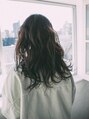 カラーリングは黒に近いダークブラウンでシックなイメージに。大きめのウエーブでしっかり巻いてカジュアルなパーマを出すのがラフな大人のイメージにより近づきます!!