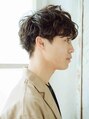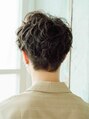 マッシュベースで重ためにカットしたスタイルに、大きめのカールがしっかり出るようにパーマをかけました。えりあしはタイトにすっきりと刈り上げました。カラーリングもマットベージュで柔らかさアップ!