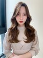 大人韓国ヘア☆ウェーブでふんわり大人っぽく!肌馴染みの良いベージュカラーでカラー!顔まわりのカットで結んだ時も可愛いく!