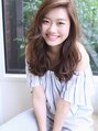 長さを生かした縦巻きウェーブと伸ばしかけバングで女性らしさをプラス。ウェーブは低温パーマでダメージを少なく。カラーは柔らかさを出すイルミナカラーでアッシュベージュに。