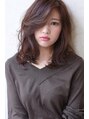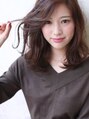 鎖骨ラインで厚みは毛先に残しつつ、巻きやすいように中間に間引きスライドカットでエアリー感をプラス。バングは目下でエレガンティラインに。カラーはヌーディブラウンで大人かわいいを表現。甘さの中にエレガントな雰囲気を叶える黄金バランスセミディ