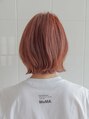 顎下ラインでカットしたボブスタイル。レイヤーを入れて丸みが出るように、内巻きにすると丸く、外はねするとくびれるカットに。カラーはレッドブラウンで柔らかさとツヤ感のあるカラーに。ベースも明るいので透明感がでます。