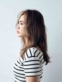長めバングの大人セミロングスタイルです!顔まわりはナチュラルに明るめにして、立体感を出します。全体のカラーも、透明感のあるカラーで髪をやわらかく見せます。ゆるく巻いた髪が、大人っぽさを演出してくれます!!