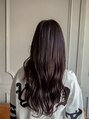 韓国風ロング巻きスタイルになります!ロングヘアスタイルだと重くなりがちなので顔まわりに少しレイヤーとサイドバングをいれることで巻いたときに動きが出ます!暗めのカラーでお肌の透明感をより際立てています!