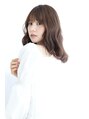鎖骨ミディアムスタイルを重めのレイヤーカットで、柔らかく、エアリーに。お顔まわりをふわっとさせたフェザーバングでフレンチガーリーな印象に*カラーはベージュカラーで透明感を出しています*