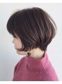 レザーカットで作るショートボブ。ベージュ系のカラーでショートでも柔らかく見えるように。