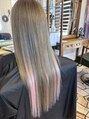 エクステでお作りしたインナーカラーが、毛先に行くにつれて見える感じが可愛らしい仕上がりになりました。顔側や、サイドにはおつけしていません。地毛と同じカラーのもので長さ出しもしています♪