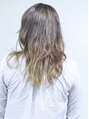 カラーはハイライトとグラデーションをミックスして入れて、ベースはミントアッシュで透明感とくすみを出して外国人風のカラーリングに^ ^カットはトップのみに段を入れ、ウルフシルエットでカットしています!毛先とトップで差をつける事でメリハリ