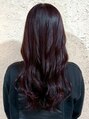 ロングレイヤー レッドブラウン 透明感カラー デジタルパーマ