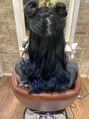 ブルーのインナーカラーをグラデーション状に入れて派手だけどインナー以外は地毛なのでダメージをしっかりマネージメントしています。全部は染めたく無いけど地毛に飽きたな、、なんて方おすすめ!毛先はブリーチ3オーバ目安です!