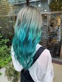 スタイルは【ブックマーク】しておくと便利です!"colorのポイント"黒髪の地毛から2回ブリーチをしてシルバーからグリーンへの派手髪!黒染め履歴などからは難しくなりますのでまずご相談ください!