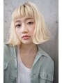 あご下切りっぱなしボブ。フルバングでさらに存在感をプラス!ハイトーンだとストリート感がありますが、ナチュラルブラウンなどカラーを変えると印象もがらっと変わります。