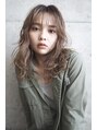 鎖骨下のミディアムヘアにウェーブパーマ*レイヤーも入っているので動きがでやすいヘアスタイル。シースルーバングなのでセンター分けやかきあげバングにアレンジも可能です。