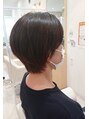 前髪を長めに、頭の丸みを生かして女性らしいショートスタイルです。少しクセのあるお客様ですが、髪質改善トリートメントをすることで髪が落ち着きお手入れ簡単なショートスタイルに仕上げました。