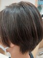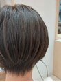 ナチュラル毛で、余りクセはない髪質です。量は多いので、丸みを出すために、すいています。襟足部分をすっきりさせるとより丸みが強調されてバランスが良くなります。