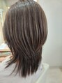 根元はグレーカラーで毛先はアッシュグレーの色味です。 アッシュ系なので明るく過ぎない、落ち着きがあります。 カットはウルフレイヤーで顔まわりがスッキリできます。
