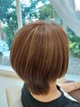 白髪が50%の方で、表面に数本ポイントブリーチをしています。オンカラーで明るめ、ベージュブラウンをしています。白髪との境が分かりにくいので、馴染みやすいです。