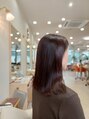 カラーの前に前処理クァンタムトリートメントカラーはパープルブラウンで柔らかな色味です。カラー後、プレミアムトリートメントでしっかり補修。