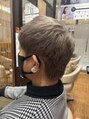 ブリーチ一回でオンカラーする暗めのベージュです!サイドはツーブロで全体的に短くさっぱりな印象になるようにカットさせていただきました!