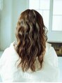 カットはレイヤーを入れたセミロングスタイル! 全体をハチ下からランダムにウェーブ巻きにして動きを出しましたが、レイヤー部分がふんわりするのでメリハリのあるひし形スタイルになります。カラーは柔らかさのあるベージュ!