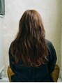 毛先にいくにつれてグラデーションカラーにしているので重たく見えがちなロングスタイルに遊びを持たせています。カラーはオレンジ系で毛先はブリーチをしてオンカラーしています。