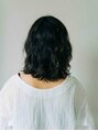 無造作なミディアムレングスのウェーブスタイルです。バングなしの髪型で暗めのトーンのスタイルなのでクールなイメージのスタイルになります。全体をミックスにコテで巻くかスパイラルパーマをかけると楽にセットすることが可能です。