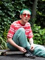 スケーター風のストリートファッションに印象的なグリーンヘアを合わせました!【ストリート/アメリカン/パンク/スケーター/ダンサー/ヒップホップ/ファンキー】