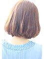 ぺたんこになりやすい前髪とボリューム感の出にくい毛先をランダムに動かします。カラーはライトアッシュで光が髪に当たったときにつや感と透明感を同時に演出。今年流行のすこし遊び心のある、顔にかかった前髪がかわいらしさをだしています。