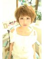 マッシュベースのショートです。丸いシルエットは可愛く見せてくれます。前髪を少し長めに流してあるので大人可愛い印象になります。顔周りを少し外ハネにしてあるのでカジュアルな感じにも合います。カラーは美髪にみえるシャンパンベージュです。
