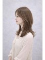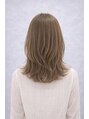 顔まわりに自然な動きをつけたくびれミディアム。毛先は軽く外ハネに仕上げて柔らかさと抜け感を演出。ナチュラルなベージュカラーで透明感とツヤ感を引き出し、上品で扱いやすいスタイルに。