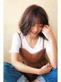 ブラウンベースにグレージュの透け感をプラスしたツヤ感透明感カラーです。カールアイロンでアレンジしやすいミディアムレングス、ラフなハネ感やカール感でやわらかくヘアを楽しめます☆