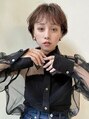 - トップが長めのショートヘアに26mmのアイロンでMIXに巻いてパーマ風スタイルに。
