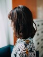 肩ラインでカットしたキッリパなしボブ。トップからウェーブをつけて動きのあるスタイルに。 [町田/町田駅]