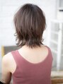 襟足を長めに残したウルフスタイル。アウトラインに大きく外ハネをつくり、バングには透け感全体的には軽い束をつくり、エアリーな質感を出しています。