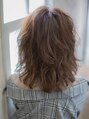 細かく巻いたカールを立体感が出るようにランダムで配置しています。レイヤーが入っているので表面に大きく動きがでて大人可愛いフェミニンな印象になっています。センターパートのバングにより大人っぽさをプラスしています【町田/町田店/町田駅/JR町田】